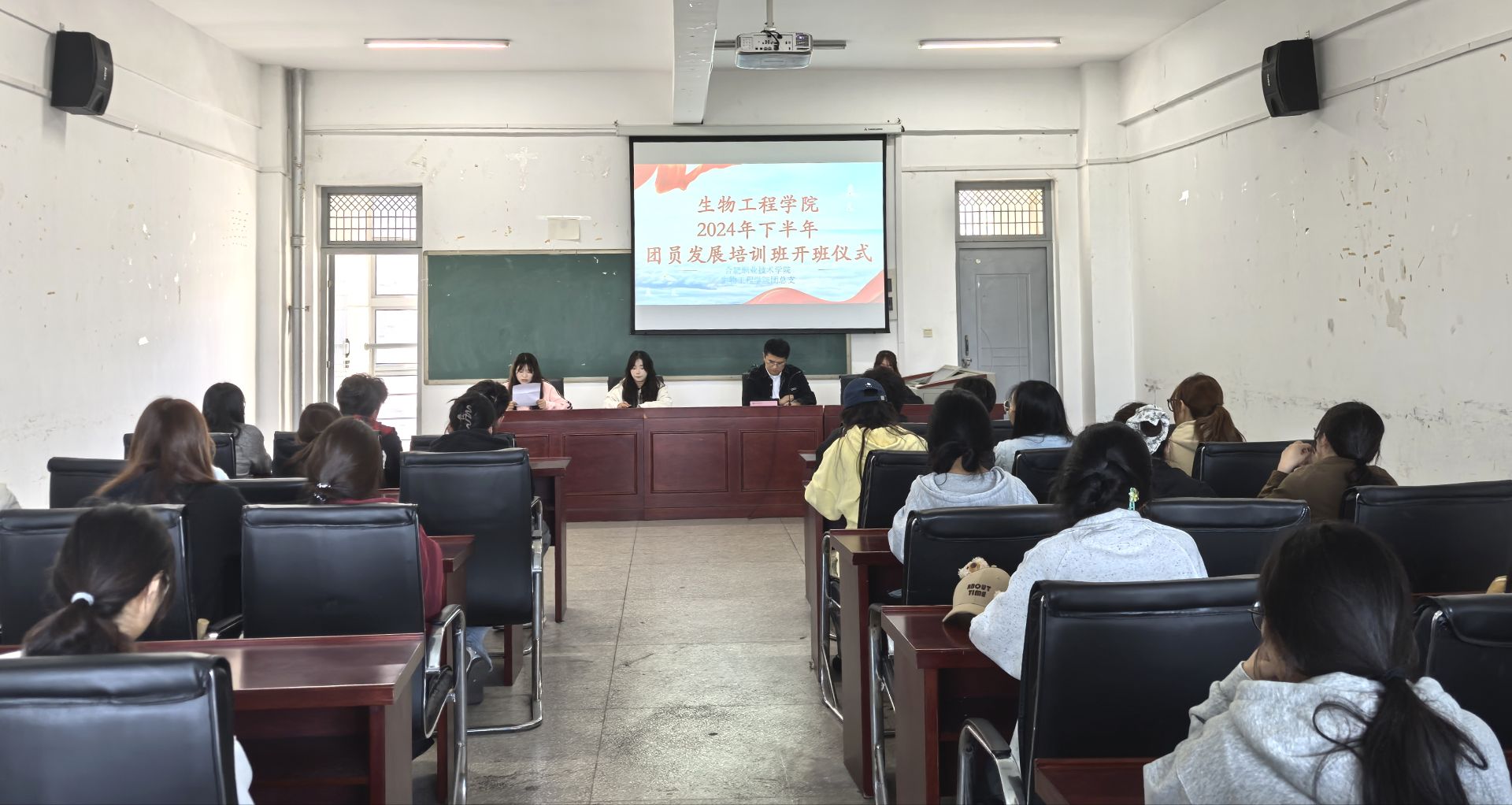 2024年10月23日中午,生物工程学院2024年下半年团员发展培训班开班仪式在生化楼A305会议室举行。9001cc金沙以诚为本团总支书记季学强老师、优秀团员代表、入团积极分子参加了本次仪式。