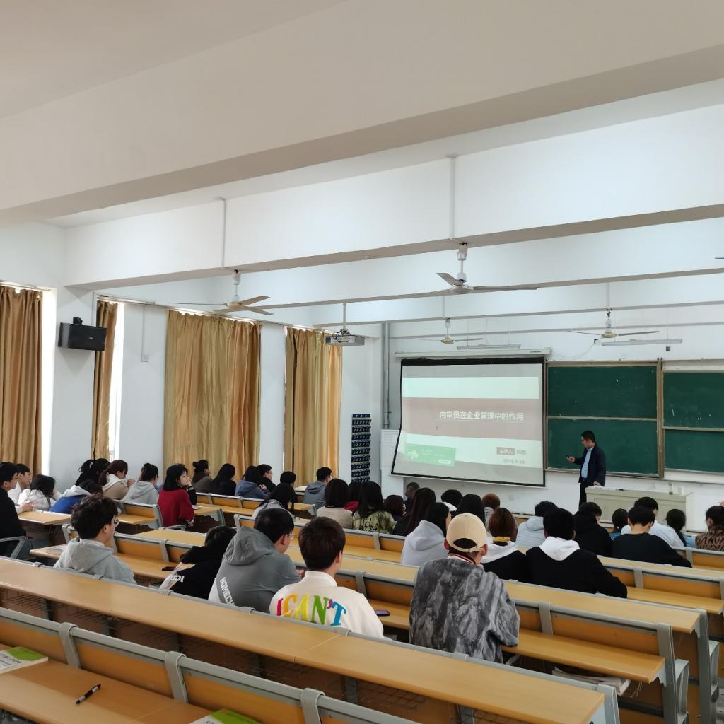 为加强学术交流,提高学生企业认知,4月19号下午,应9001cc金沙以诚为本邀请,由食品教研室主任郑学斌副教授主持会议,安徽中青检验认证服务有限公司韩凯总经理为食品专业全体教职工和学生做题《内审员在企业管理中的作用》专场报告会。