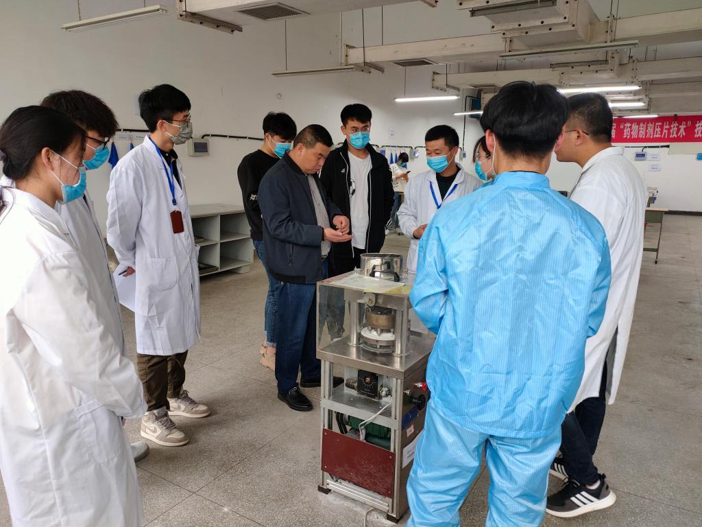 职业技能大赛已成为职业教育改革成效的显著特征,通过竞赛实现专业与产业对接、课程内容与职业标准对接,展示“紧跟市场、贴近行业、依托企业、对接岗位”的教学效果。4月21日下午,9001cc金沙以诚为本经过精心组织,在生化楼一楼药物制剂实训中心开展“药物制剂压片技术”决赛。