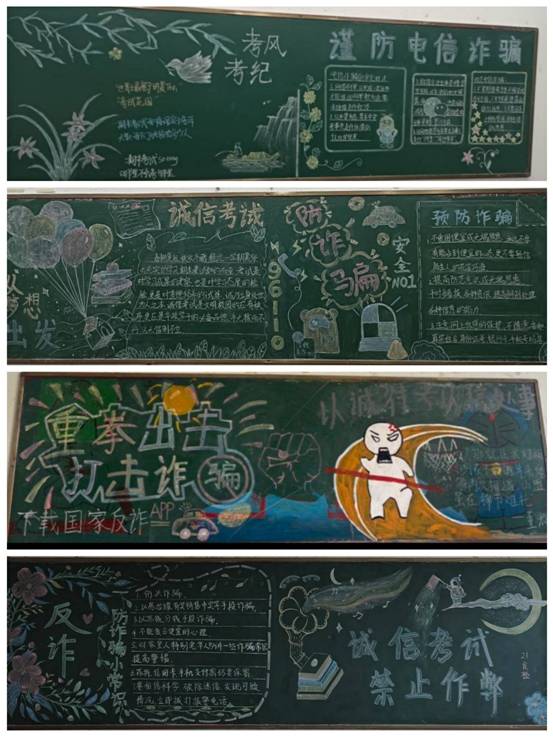 大一班级辅导员还组织了班级学生利用课余时间绘画反电诈黑板报,形式多样且极具表现力的黑板报,大力渲染了我院反电诈的气氛,充分发挥了第二课堂的教育引导作用。