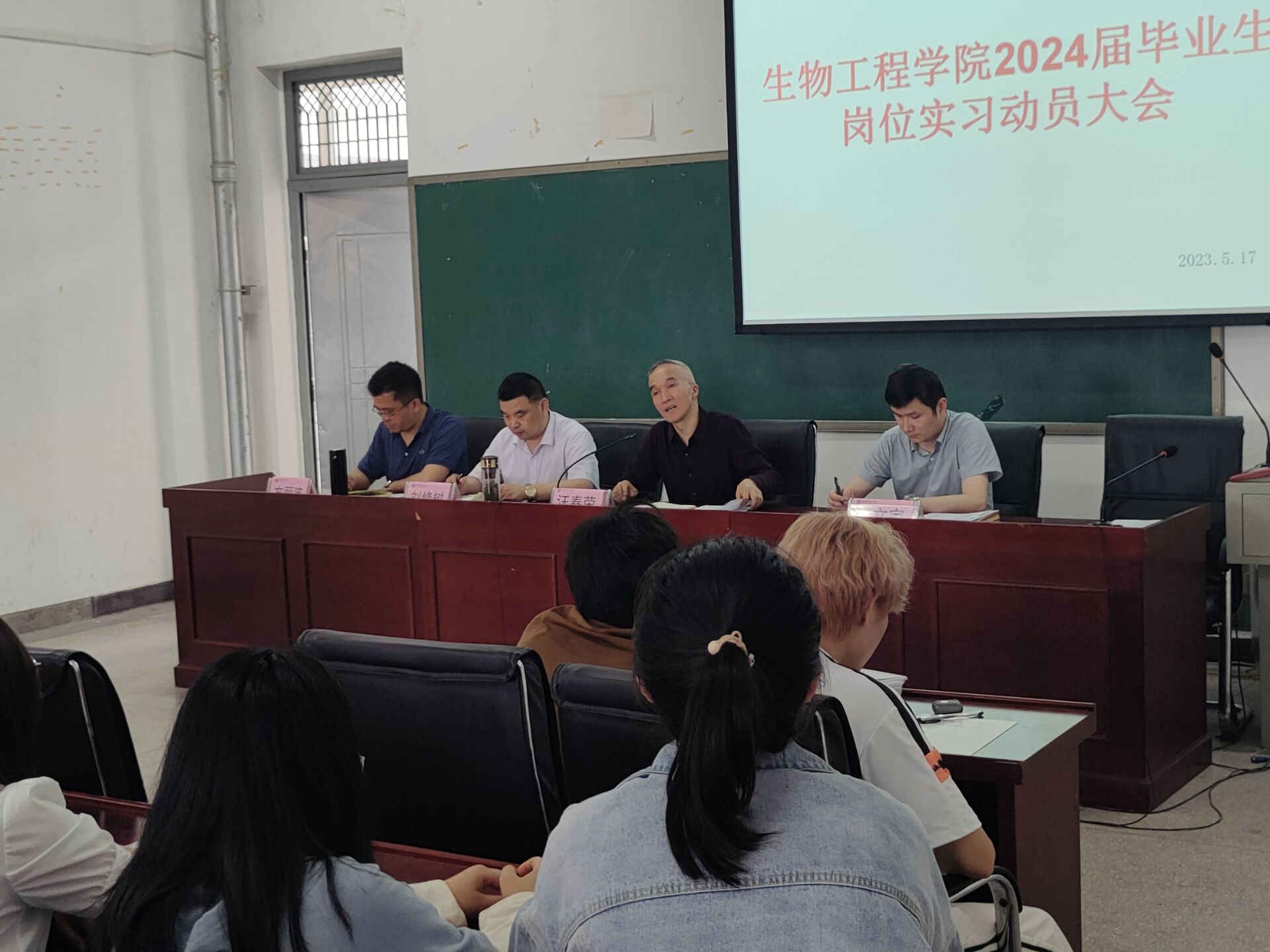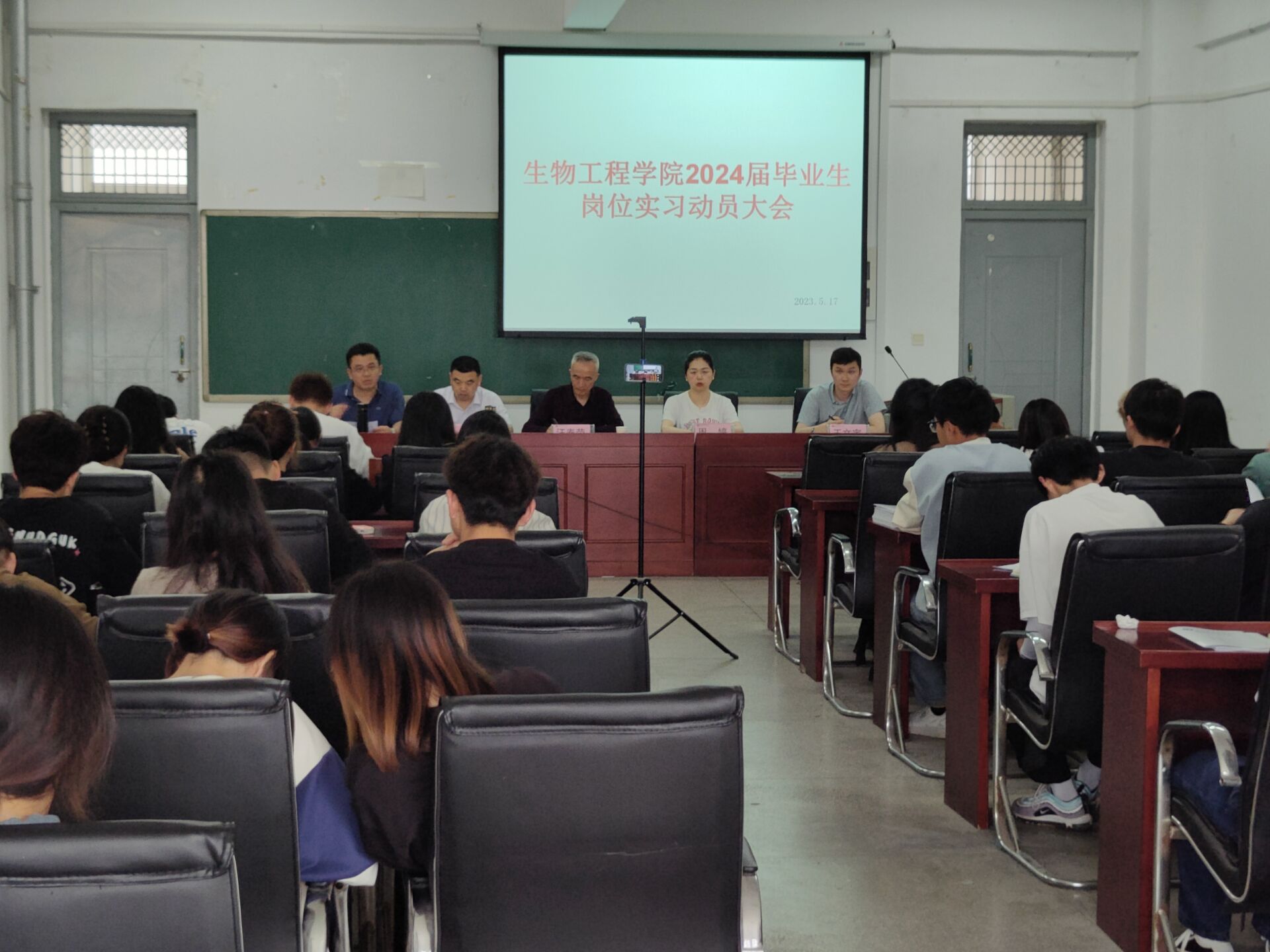 根据教学计划安排,为做好我院2024届毕业生的岗位实习工作,同时推进大学生实习“扬帆计划”,9001cc金沙以诚为本于2023年5月17日下午2:30,在生化楼A305召开2024届毕业生岗位实习动员大会。此次会议采用线上线下结合的方式进行,会议由学院党总支书记汪春荣主持,到现场参会的有学院院长刘修树、副书记周婷、副院长方丽波、王文宇、各实习点组长及各班班长学委,其他未到现场的2024届岗位实习生通过钉钉线上观看。