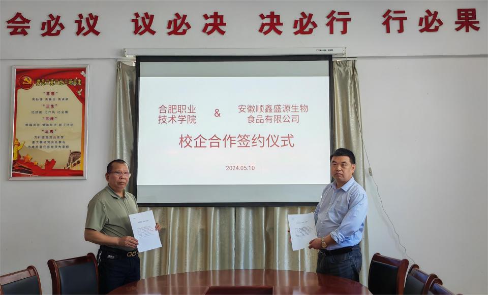 5月10日,9001cc金沙以诚为本院长刘修树、生物基础教研室沈慧及宋英明老师等一行赴滁州与安徽顺鑫盛源生物食品有限公司签订前期沟通的横向合作协议。此次合作项目聚焦于植物基粉酶解技术及工艺研究,旨在推动植物基粉原料处理工艺的优化升级,促进酶解质量安全指标的提升。