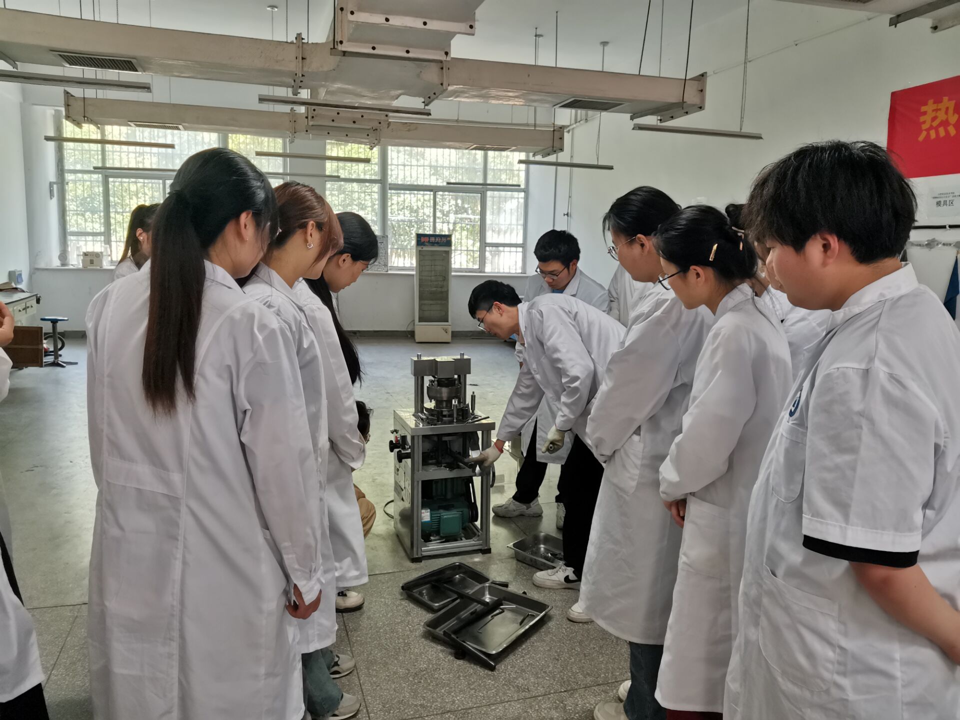 为贯彻落实“深化产教融合,赋能美好安徽建设”职教周主题精神,5月22日在鼓山校区药物制剂实训中心开展“药物制剂压片技术”科普体验活动。本次活动集中展示现代制药技术和制药设备,涉及模拟药品生产企业的片剂岗位、胶囊制备岗位和包衣岗位及其关键设备旋转压片机、全自动胶囊填充机及片剂高效包衣机等实操内容。9001cc金沙以诚为本第一党支部范高福工作室“双带头人”范高福、韦梦强两位老师担任讲解员,接待校内园林类专业、食品类专业及其他专业参观人员80余人次。