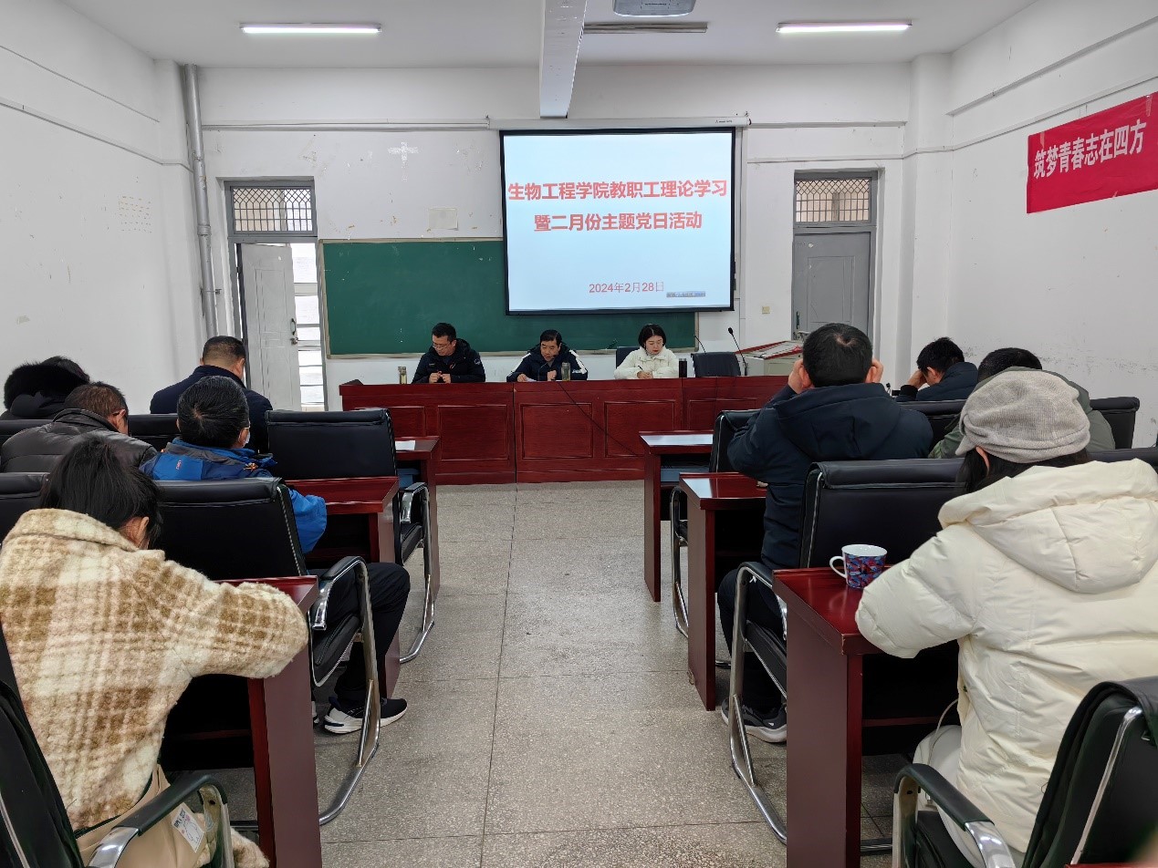 为巩固深化学习贯彻习近平新时代中国特色社会主义思想主题教育,保障新学期开学工作稳定有序开展,根据学校党委安排部署,2月28日下午,9001cc金沙以诚为本在生化楼A305开展了教职工理论学习暨二月份主题党日活动。会议由党总支副书记(主持工作)慈龙保主持,全体教职工参加会议。