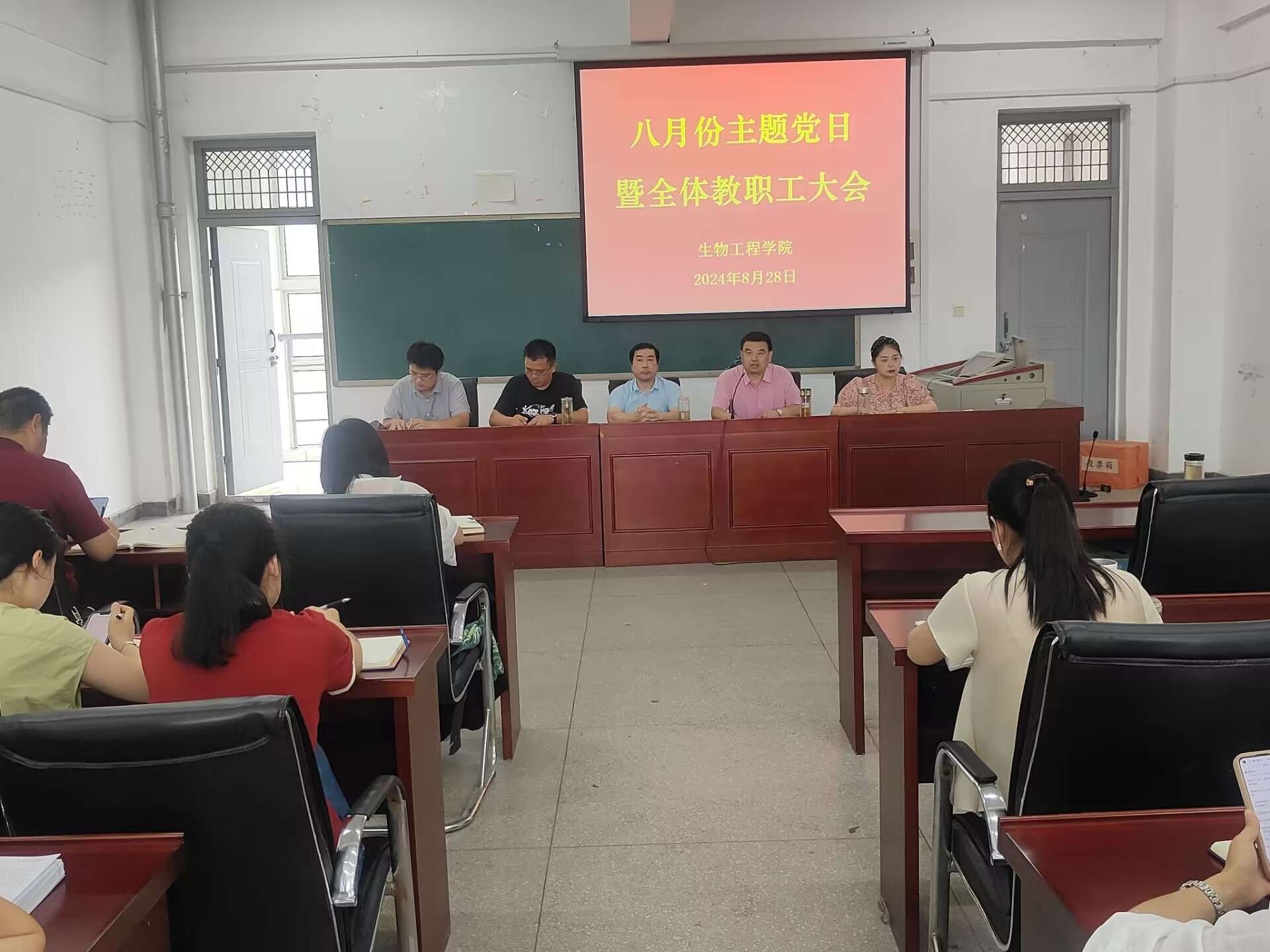 为巩固提升学习贯彻习近平新时代中国特色社会主义思想主题教育成果,深入推进党史学习教育常态化长效化,进一步严肃党内组织生活,扎实做好开学工作,8月28日,9001cc金沙以诚为本党总支在生化楼A305室召开八月份主题党日活动暨全体教职工大会,会议由该院党总支副书记(主持工作)慈龙保主持,全体教职工参加会议。