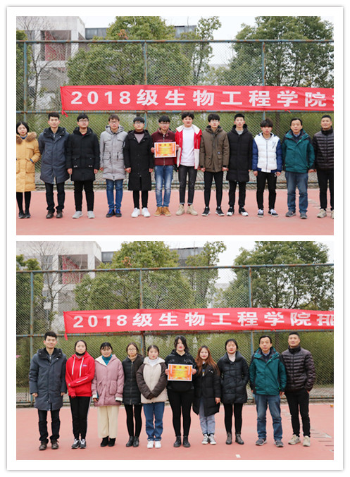 最终,18药产一班获得男子组冠军,18药学五班获得女子组冠军。学院老师为获奖学生颁奖并合影留念。