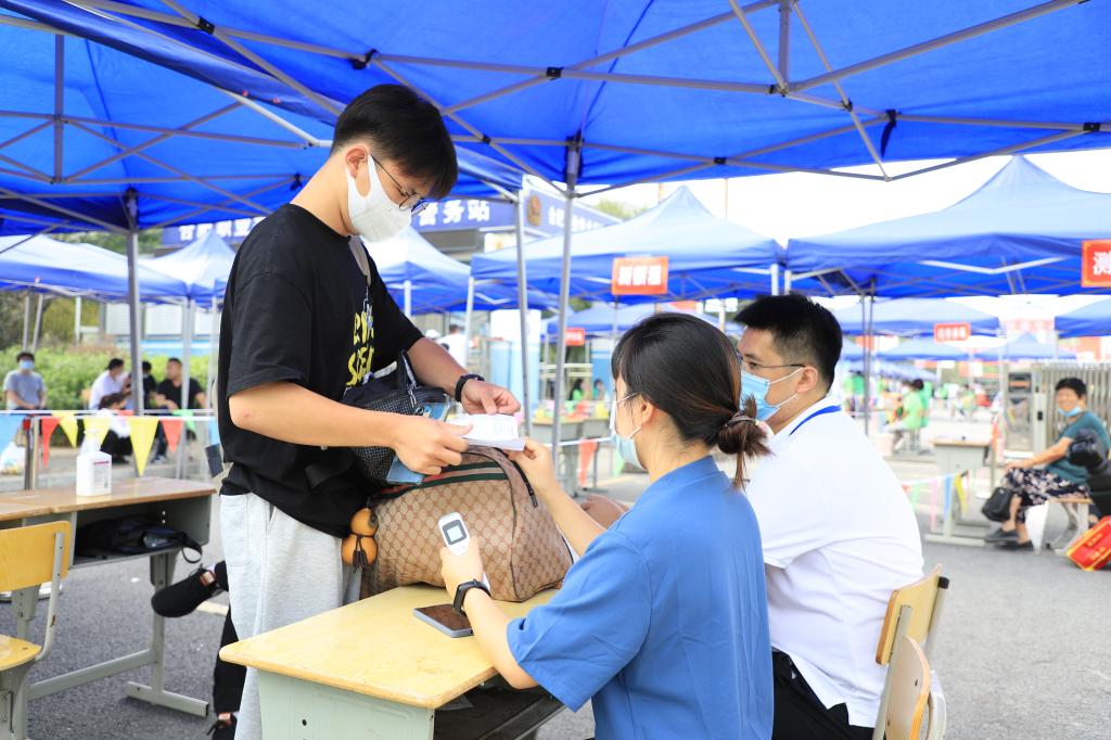 9月9日上午,9001cc金沙以诚为本2021级新生报到,学院迎新工作正式启动。9001cc金沙以诚为本党总支书记汪春荣、院长刘修树、副院长方丽波、党总支副书记周婷、21级全体新生辅导员在校北门东侧,迎接新生的到来。一线教职员工严格把控返校通道的第一道关卡,引导新生在入口处有序测量体温,核验健康码、新冠疫苗接种记录、14天行程卡以及48小时内核酸检测报告。