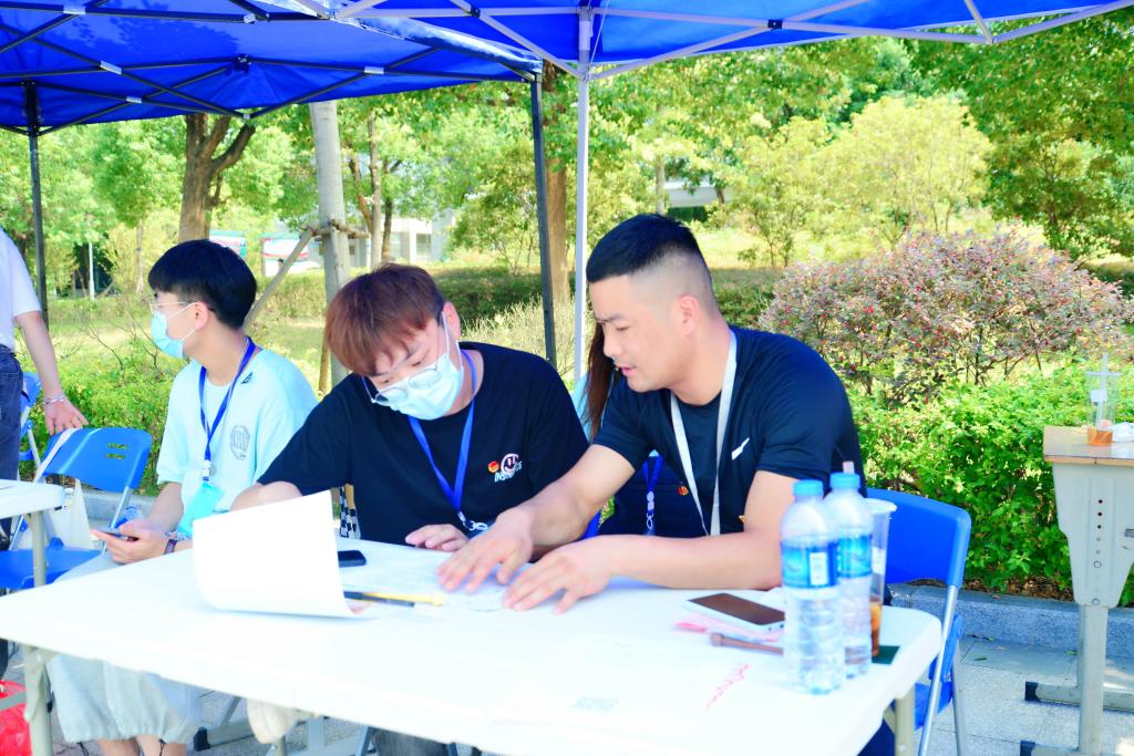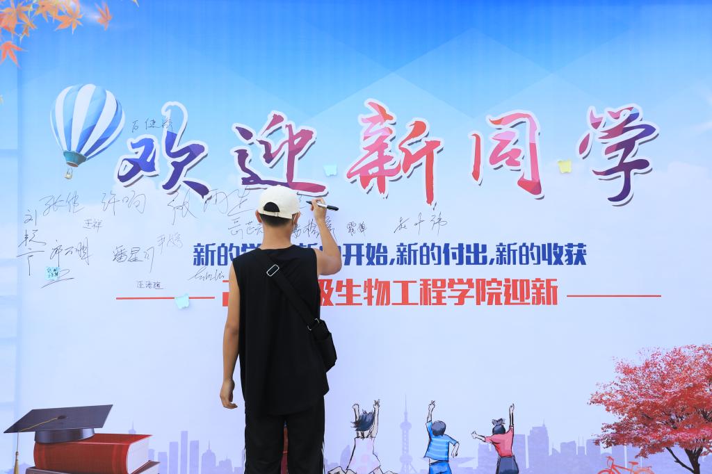 在消毒处,学院贴心地为所有新生准备了替换的口罩,随后志愿者们指引各位新同学前往班级报到点,并耐心解答他们在生活用品领取、寝室入住等方面的问题。本次志愿者团队由生物工程学院团总支组织,100位学长学姐身穿果绿色志愿服,为萌新们提供热情的服务。秋意渐凉,愿这绿色带给新生春天般的温暖,化解他们心头的胆怯与陌生。