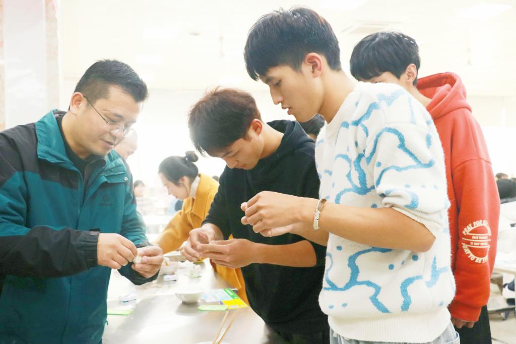 此次冬至日活动分为三个部分。首先,主持人通过暖人肺腑的开场致词宣布活动正式开始,第一部分为“包饺子”环节;同学们纷纷撸起袖子,巧手翻飞,领导和老师们也热情参与,互相切磋。不一会儿,一个个饱满可爱的饺子被整齐摆放在盘中。大家有说有笑,彼此比较着饺子的形状,看谁包出来的饺子形状好看,活动现场气氛热烈。