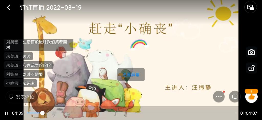 讲座内容主要包括以下四个方面:一、正确认识是消除担心的第一步。通过一个温暖治愈的动画短片给同学们介绍了病毒的传播方式和隔离期间逆行者们的生活,希望大家放平心态,心怀感恩,珍惜当下的岁月静好。二、自我保健措施。隔离期间的自我防护也不可松懈,要勤洗手,多做室内运动。三、自我调试的方法。针对同学们可能出现的心理问题,汪老师建议大家可以通过音乐、绘本、运动、学习、冥想等方式进行调节。四、运用积极心理学应对疫情后的生活。有选择地阅读媒体的负面信息;关注自己,培养积极的思维模式;学会感恩,积攒生活中的小美好,培养积极情绪。