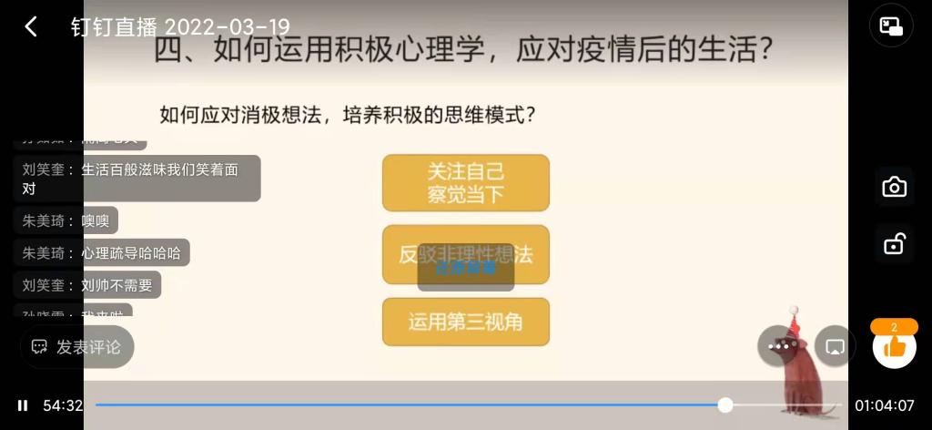 通过本次心理讲座,有助于隔离的同学在疫情期间做好心理建设,收获更多的安心,进行自我心理疏导的同时,也可以帮助身边的人渡过难关。