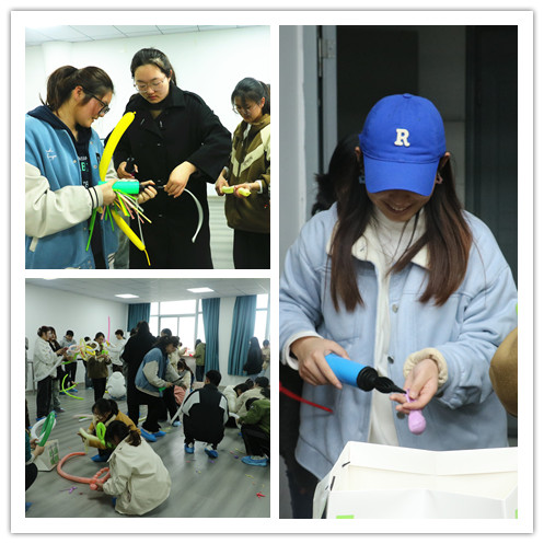 首先,通过小游戏——“滚雪球”来进行破冰。一声口令,同学们便争分夺秒地去认识组内成员,每一个人都在认真倾听着别人的发言,在欢快的气氛中通过不断强化加强了对彼此的熟悉。“爱的抱抱”环节,同学们将心中的烦恼写在吹好的气球上,与志愿者或朋友拥抱,挤破气球,驱散烦恼。最后,是本次活动的核心环节——“打包春天”,心理委员分发气球花束材料包,同学们将吹好的气球进行扭捏,巧手翻飞,一朵朵美丽的小花绽放在同学们的手中,不同颜色的花束搭配在一起,装进礼盒中,春天的多彩与美好映入眼帘。